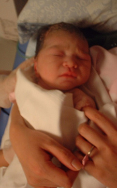 Anna 10 minutes after birth, just after having her lungs cleaned out.