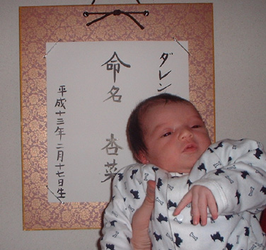 Anna with her name and birthday in Japanese