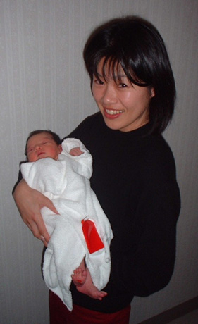 Auntie Toshie and Anna with her long legs hanging out